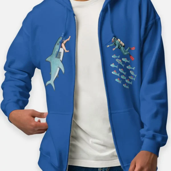• Double-needle stitched collar, shoulders, armholes, cuffs, and hem